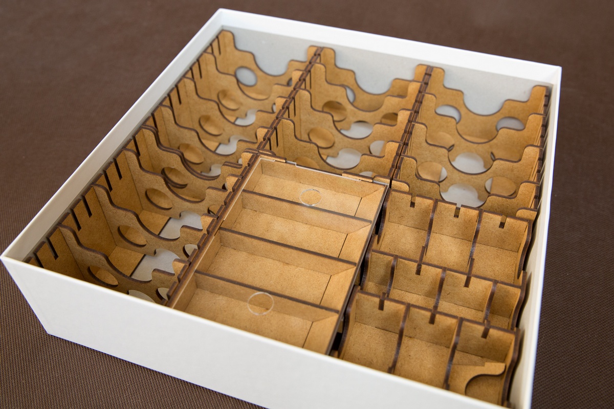 Cena obejmuje pudełko tekturowe wraz z insertem do samodzielnego sklejenia. Cena obejmuje elementy insertu do samodzielnego sklejenia. Insert wykonany jest ze sklejki lub HDF-u o grubości 3 mm, nie jest malowany. Do sklejenia wymagany jest klej WIKOL, który możesz kupić tutaj. Komponenty gry przedstawione na zdjęciach nie wchodzą w skład sprzedawanego zestawu. Produkt może różnić się kolorystycznie od widocznego na zdjęciach – zależy to od partii sklejki lub HDF-u.