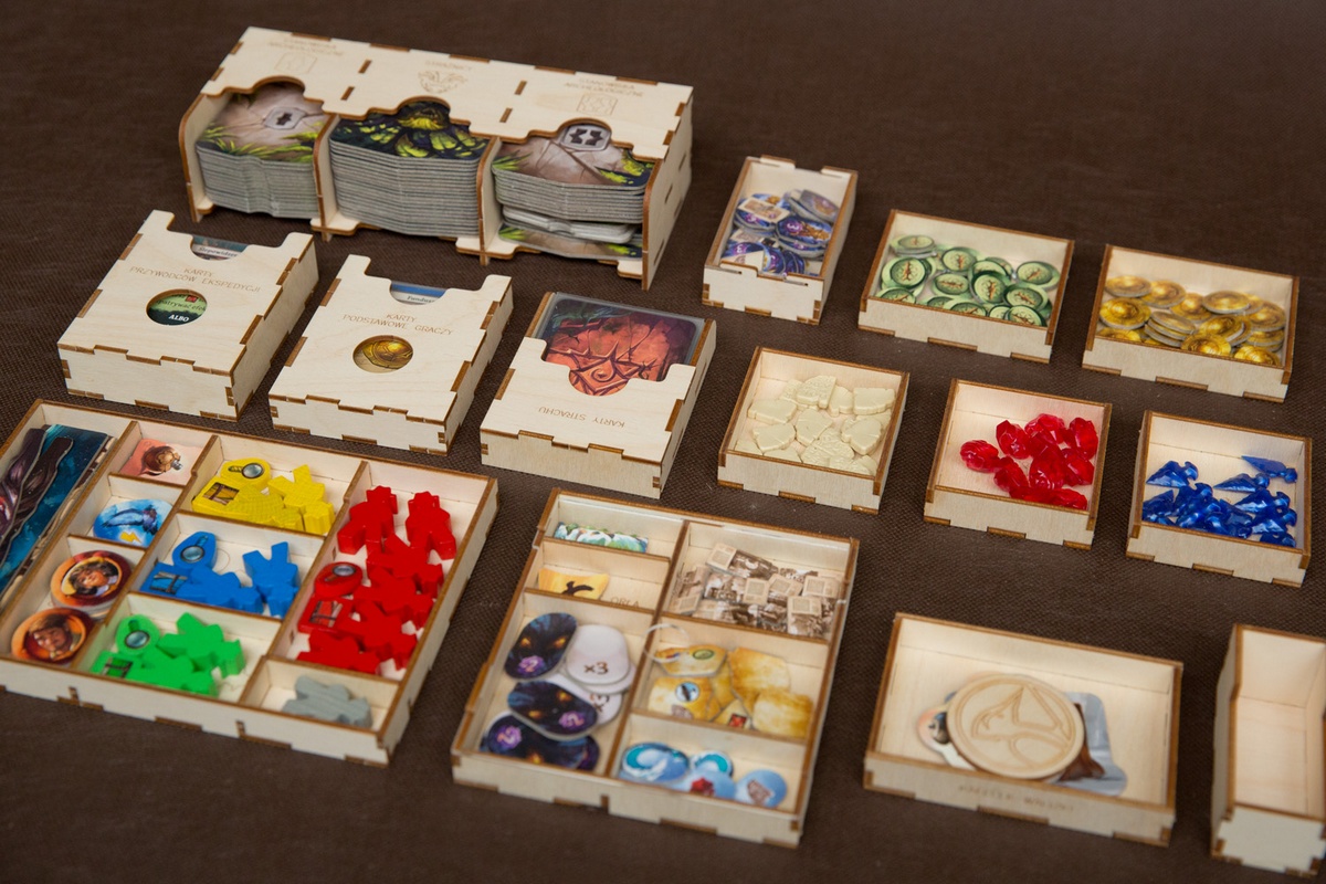- 3 pojemnik na karty Przywódców Ekspedycji, karty Podstawowe Graczy oraz karty Wydarzeń / Rozdziałów,