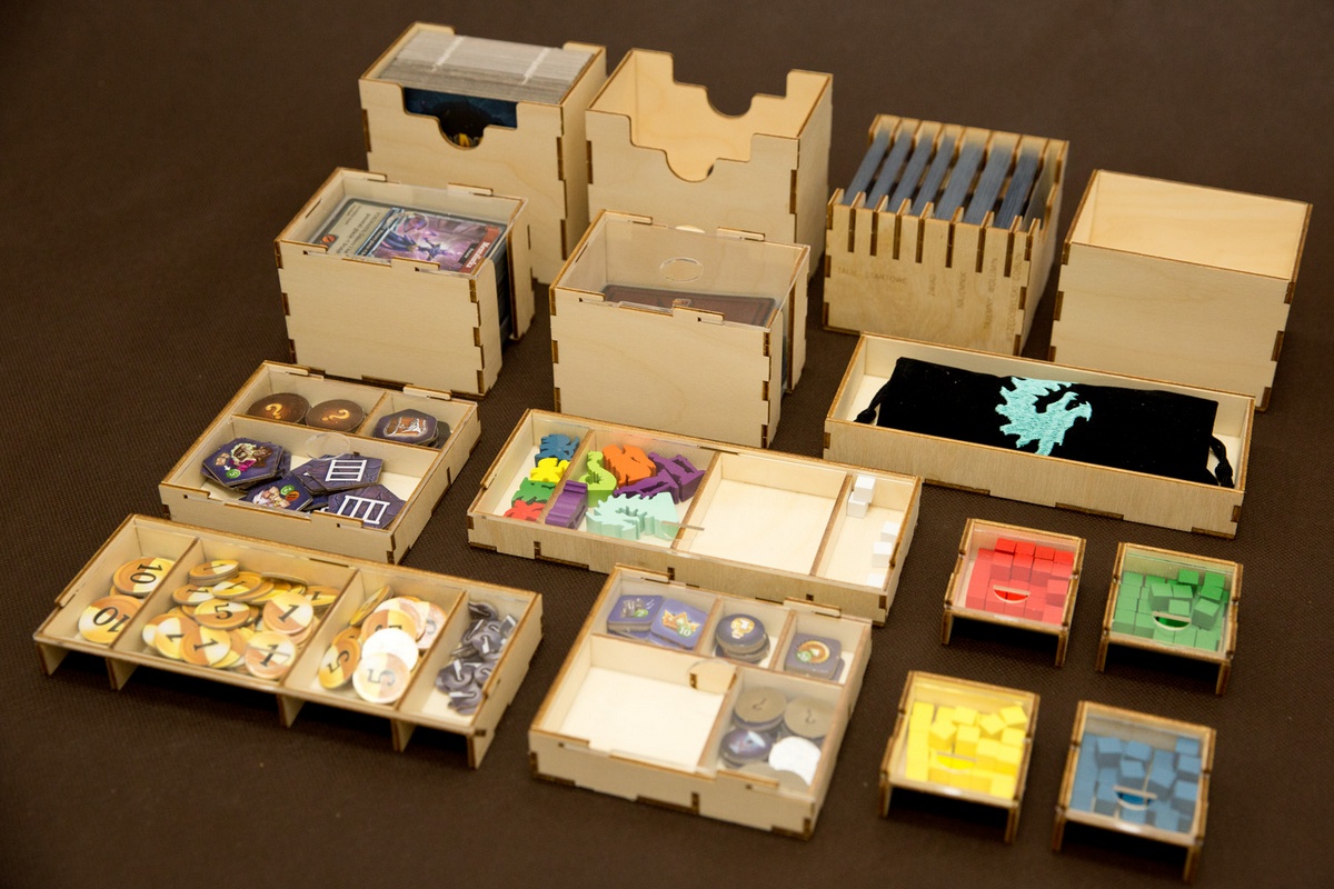 - insert posiada wypełniacze wolnej przestrzeni tak zorganizowane, że w ich miejsce w przyszłości można będzie zaprojektować pojemniki na karty oraz na żetony.
