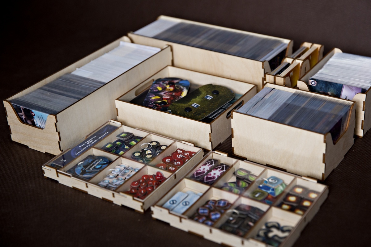 - Insert pasujący do gry Aeon's End Legacy - duży pojemnik na karty z nacięciami i 7 przekładkami ze sklejki