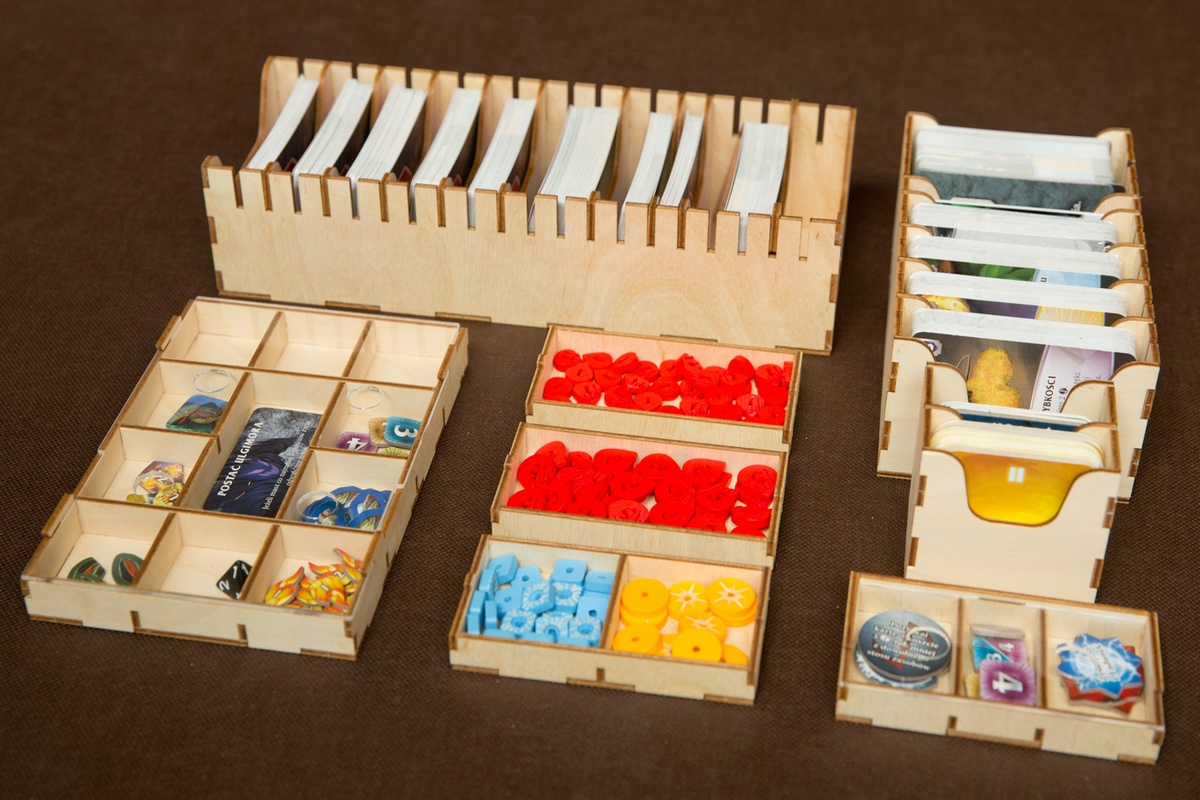Cena obejmuje elementy insertu do samodzielnego sklejenia. Insert wykonany jest ze sklejki lub HDF-u o grubości 3 mm, nie jest malowany. Do sklejenia wymagany jest klej WIKOL, który możesz kupić tutaj. Komponenty gry przedstawione na zdjęciach nie wchodzą w skład sprzedawanego zestawu. Produkt może różnić się kolorystycznie od widocznego na zdjęciach – zależy to od partii drewna / HDF-u.