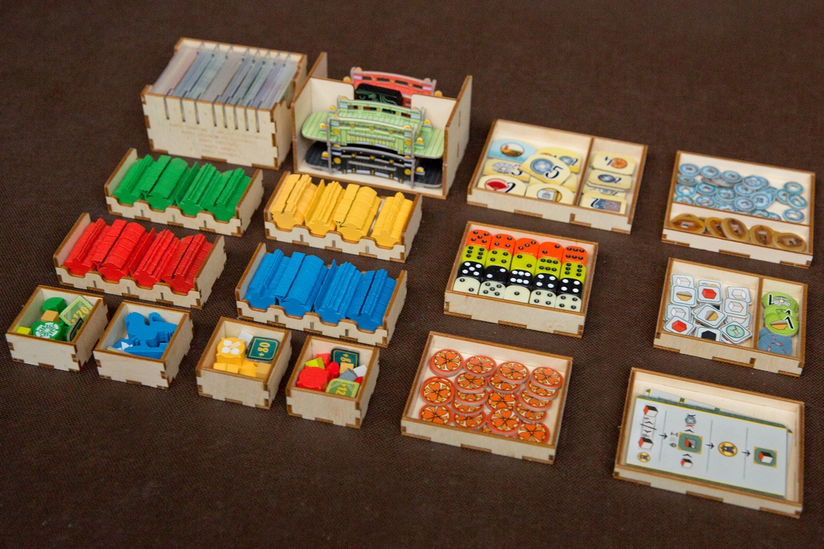 Insert posiada pojemniki na żetony do wyłożenia na stół pozwalające utrzymać porządek podczas rozgrywki.