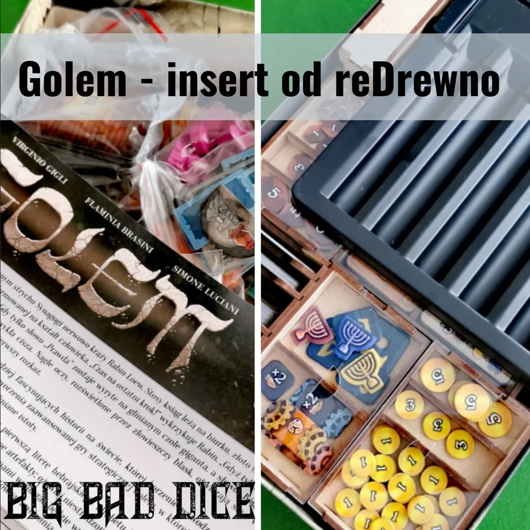 Insert pasujący do gry strategicznej Golem. Insert mieści karty w koszulkach klasy Premium o grubości do 110 mikronów. Insert mieści również customową Synagogę wykonaną ze sklejki dostępną wyłącznie sklepie Portal Games.