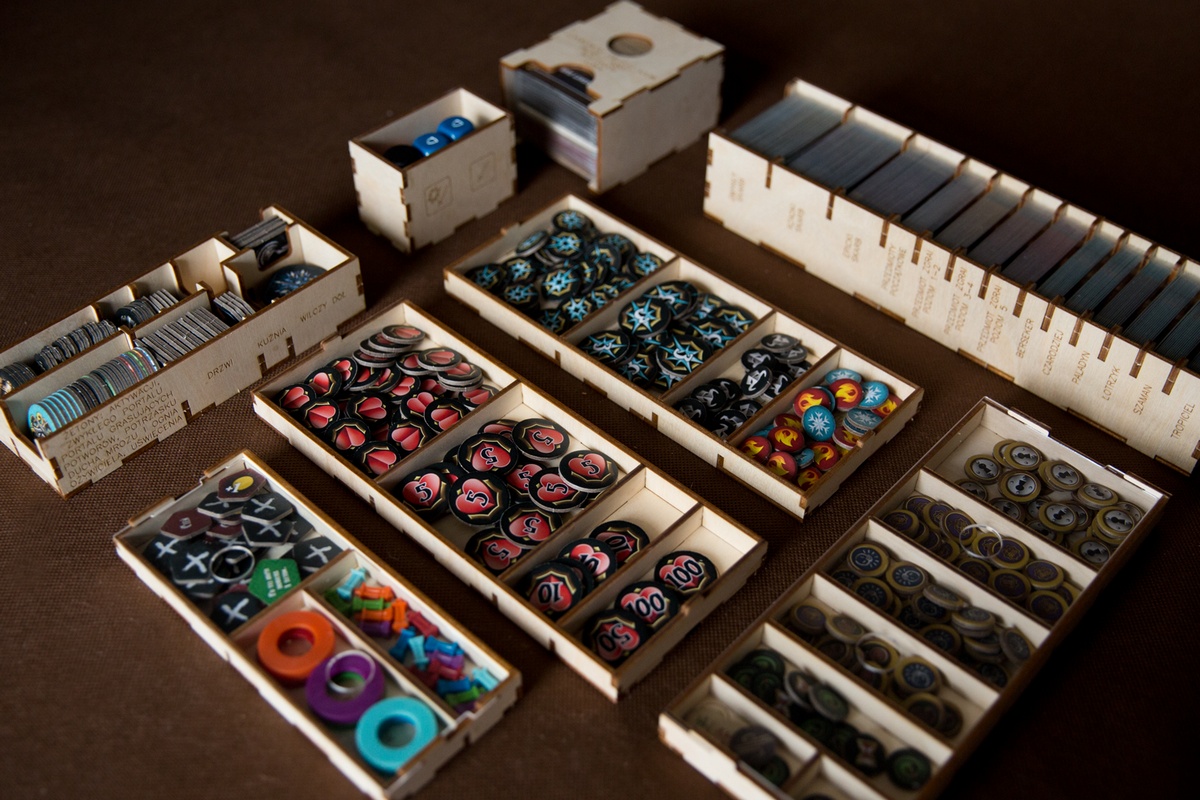 - pojemniki na żetony i znaczniki pomagają utrzymać ład na stole,