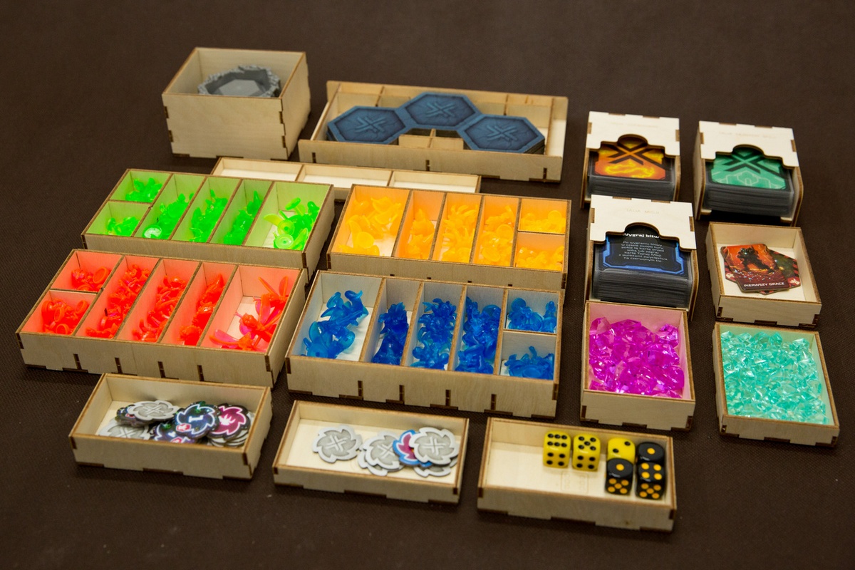 Insert jest przygotowany w formie pozwalającej szybkie i sprawne przygotowanie rozgrywki oraz porządkowanie po rozgrywce. Zawiera następujące rozwiązania zaprojektowane dla Was: