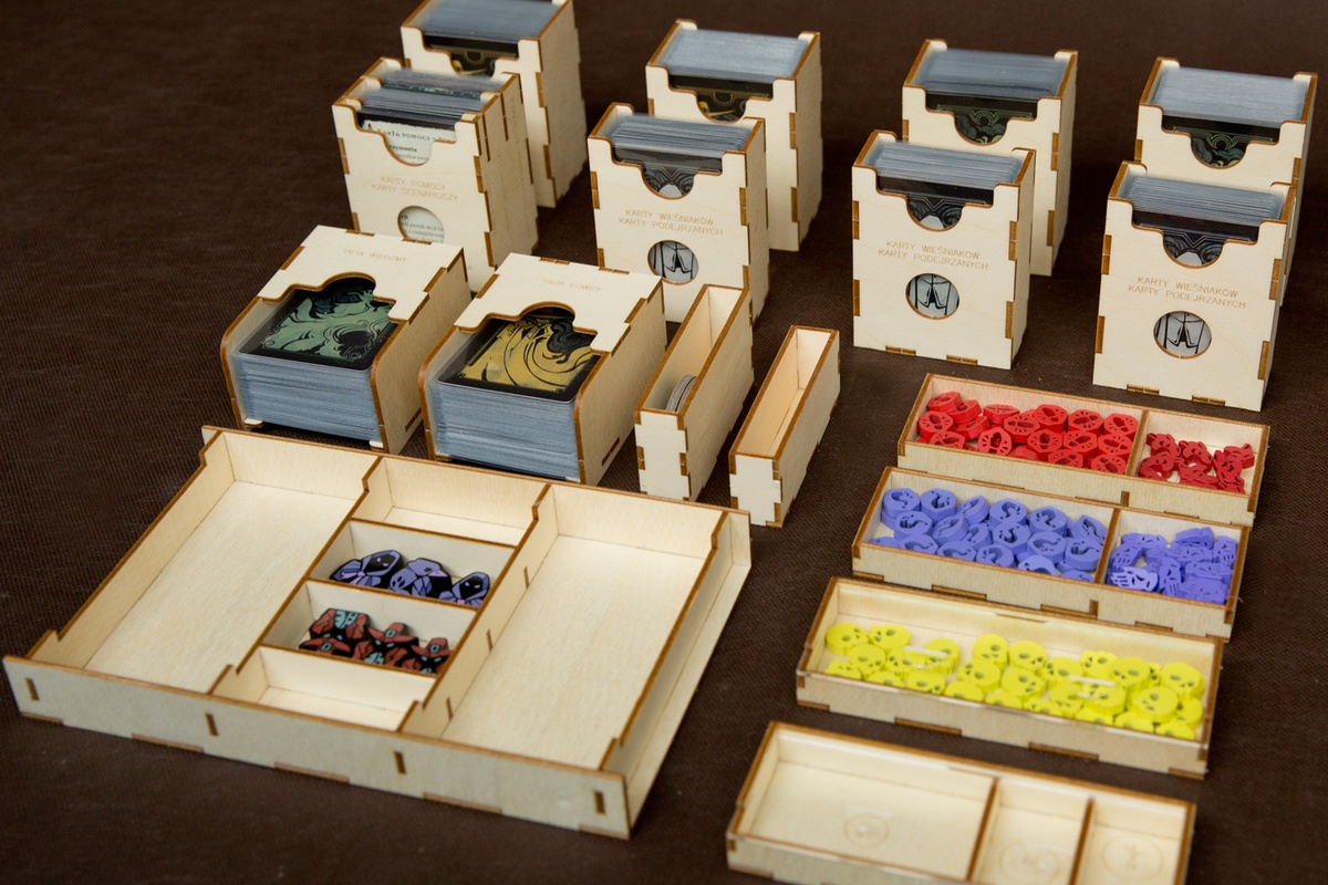 Insert posiada 2 podajniki na złożone talie Wiedźmy oraz Łowcy oraz 3 pojemniki na żetony do wyłożenia na stół pozwalające utrzymać porządek podczas rozgrywki.
