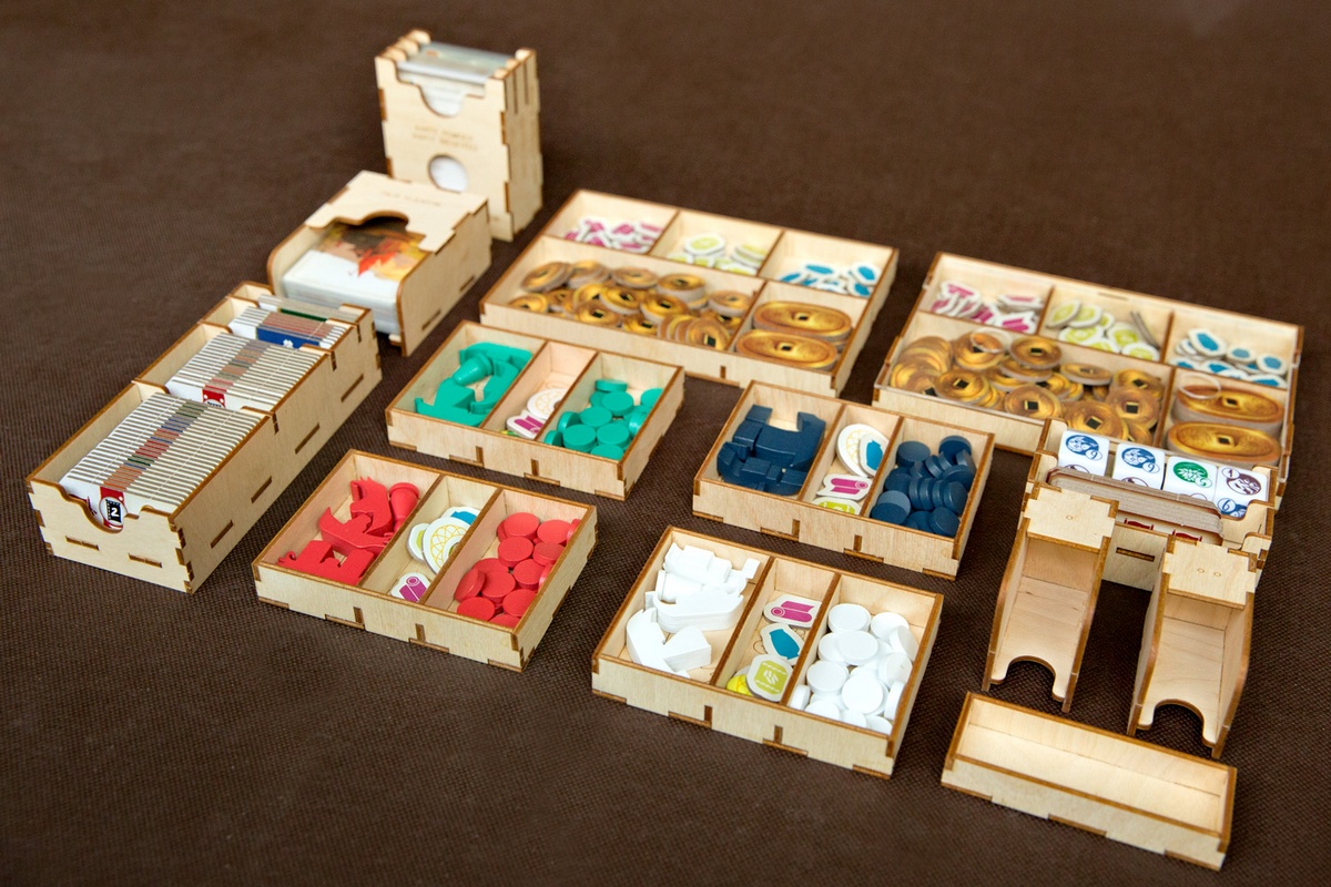 - oddzielne pojemniki na elementy używane tylko podczas przygotowania rozgrywki i oddzielne na elementy używane w trakcie niej,