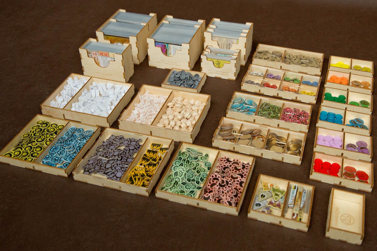 Cena obejmuje elementy insertu do samodzielnego sklejenia. Insert wykonany jest ze sklejki lub HDF-u o grubości 3 mm, nie jest malowany. Do sklejenia wymagany jest klej WIKOL, który możesz kupić tutaj. Komponenty gry przedstawione na zdjęciach nie wchodzą w skład sprzedawanego zestawu. Produkt może różnić się kolorystycznie od widocznego na zdjęciach – zależy to od partii sklejki lub HDF-u.
