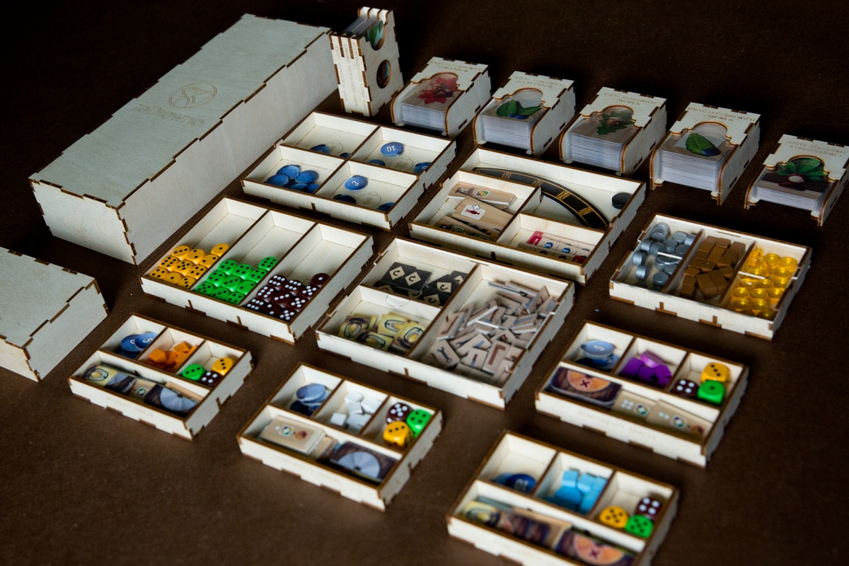 Cena obejmuje elementy insertu do samodzielnego sklejenia. Insert wykonany jest ze sklejki lub HDF-u o grubości 3 mm, nie jest malowany. Do sklejenia wymagany jest klej WIKOL, który możesz kupić tutaj. Komponenty gry przedstawione na zdjęciach nie wchodzą w skład sprzedawanego zestawu. Produkt może różnić się kolorystycznie od widocznego na zdjęciach – zależy to od partii sklejki lub HDF-u.