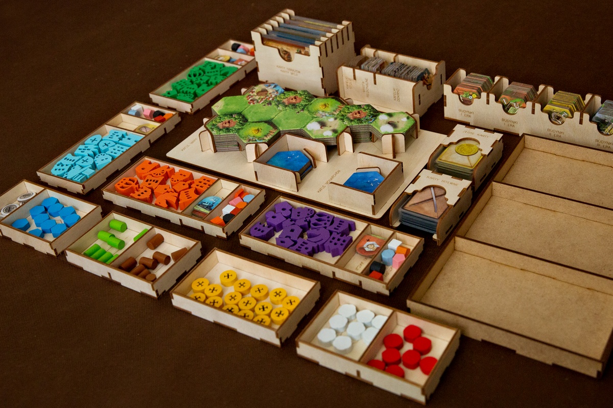 Cena obejmuje elementy insertu do samodzielnego sklejenia. Insert wykonany jest ze sklejki lub HDF-u o grubości 3 mm, nie jest malowany. Do sklejenia wymagany jest klej WIKOL, który możesz kupić tutaj. Komponenty gry przedstawione na zdjęciach nie wchodzą w skład sprzedawanego zestawu. Produkt może różnić się kolorystycznie od widocznego na zdjęciach – zależy to od partii sklejki lub HDF-u.