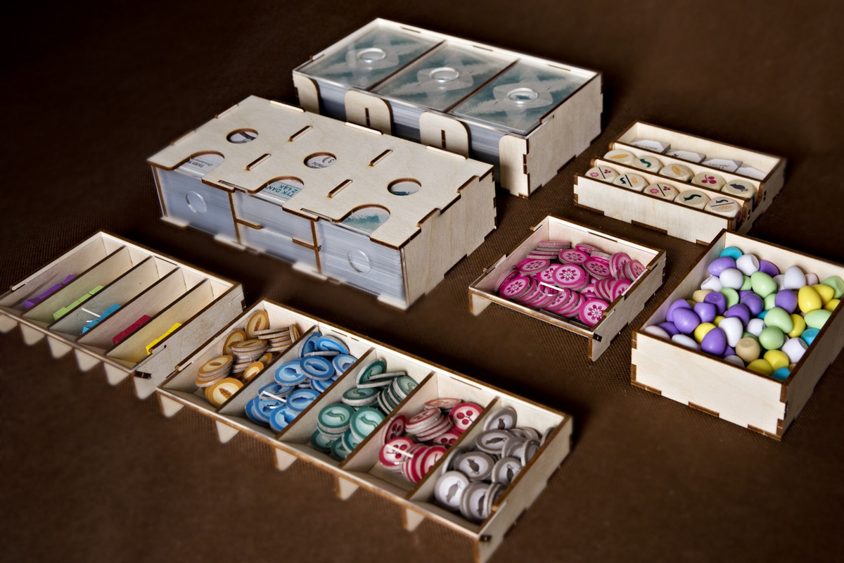 Gra zawiera bardzo dużo kart, dlatego specjalnie do rozgrywek przygotowane są dwa podajniki różnego typu, których można niezależnie używać. Jeden z pojemników ma specjalne ograniczniki i służy do wyłożenia kart do gry. Podajniki posiadają plastikowe zasuwki, dzięki czemu karty się nie wysuwają. W insercie znajdują się również wygodne podajniki na żetony pożywienia, nektaru oraz na kostki akcji, które ułatwią dociąganie wymienionych elementów.